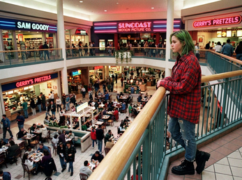 Okay, so, green hair day, ripped jeans check, and flannels are ON. Mall time! First stop HAS to be the record store. Gotta see if that new Smashing Pumpkins single is in (fingers crossed!). Then, arcade! I'm gonna waste so much money on the dance machine—totally worth it if Mark is there cause he is cute—and maybe win a stuffed animal if I'm lucky. Food court's next. People-watching is a must, especially by the fountain... maybe snag a pretzel, too. I'll probably run into Mrs. Davis, who will tell me to pull up my pants. Ugh, whatever; I'm there to check out cute boys and hope Chad sees me. If I have Any money from baby-sitting, I'm heading to the Limited Too.